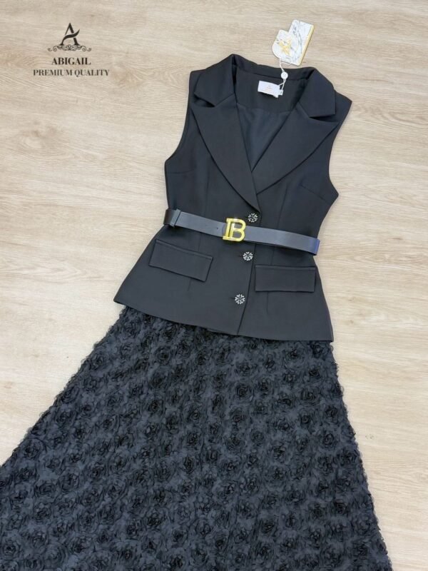 3-piece set: Sleeveless blazer with collar and front buttons, a simple yet elegant design, enhanced with a belt.