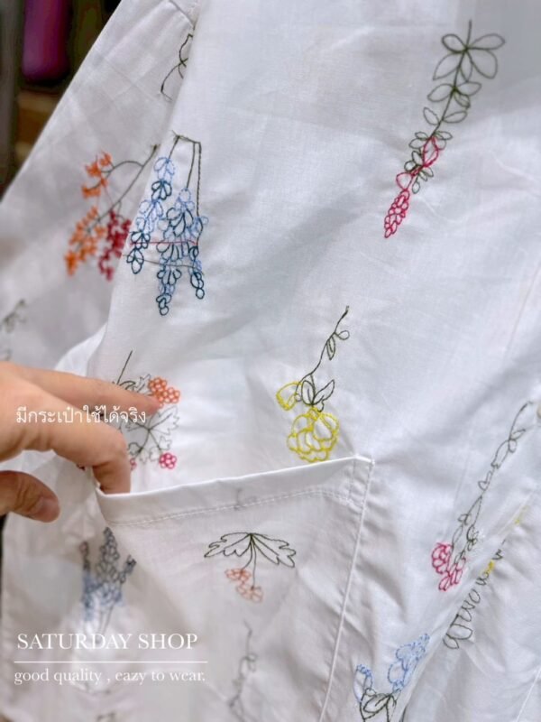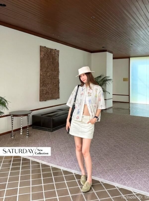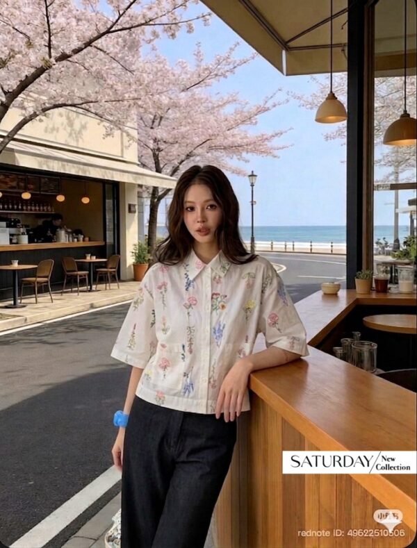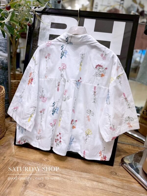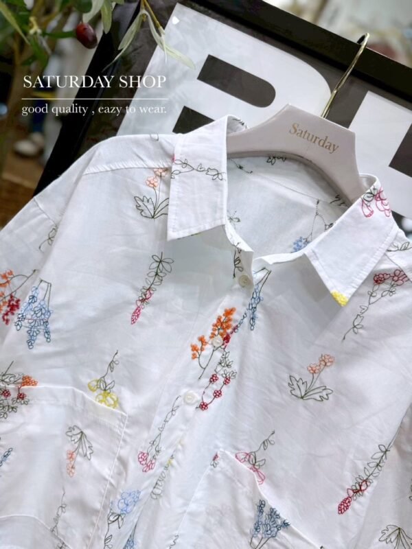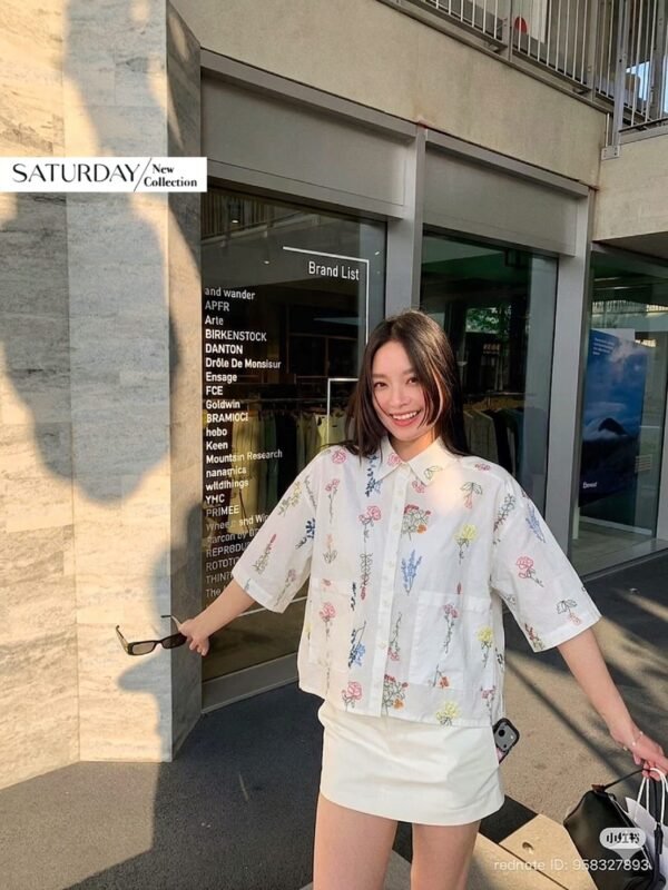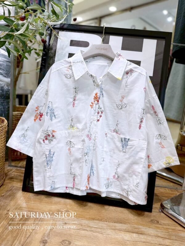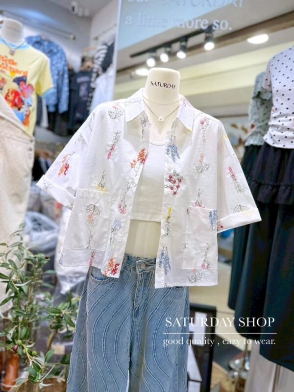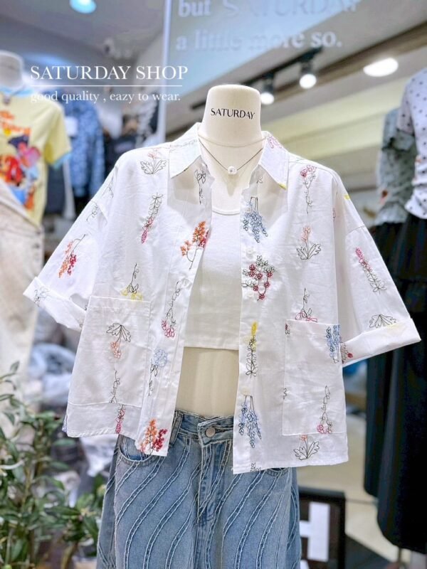 A short-sleeve cotton shirt featuring intricate all-over floral embroidery. It includes a functional front pocket and can be worn either as a standalone top or as a lightweight outer layer. Whether for a casual day out or a seaside getaway, this piece is an absolute must-have!