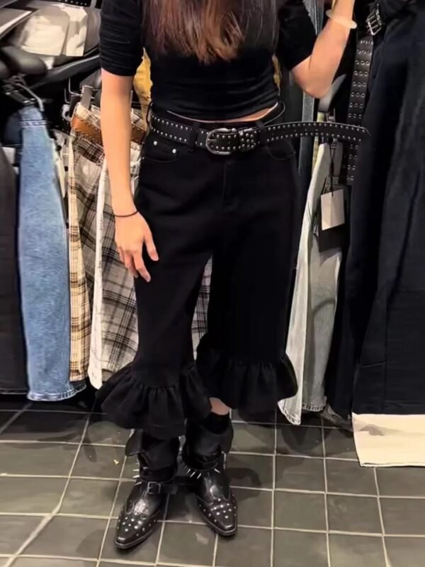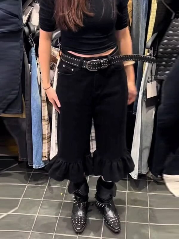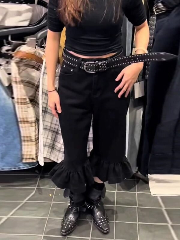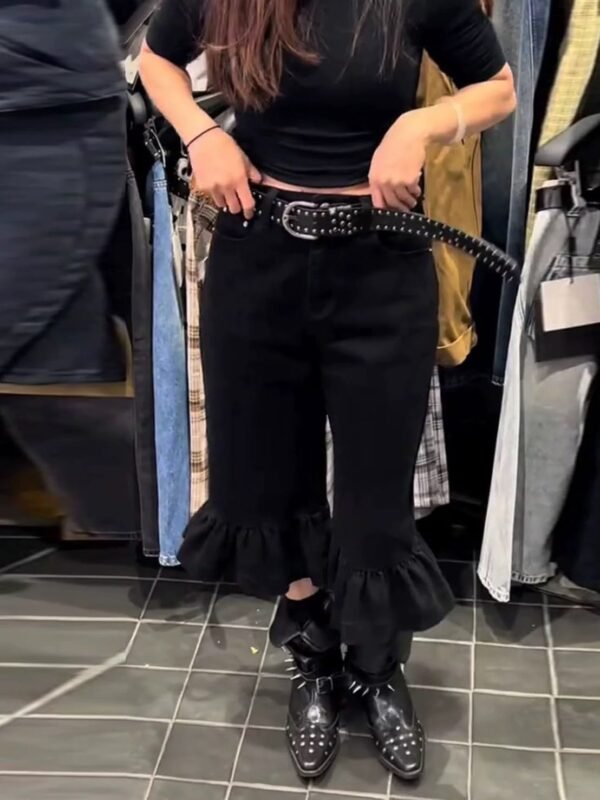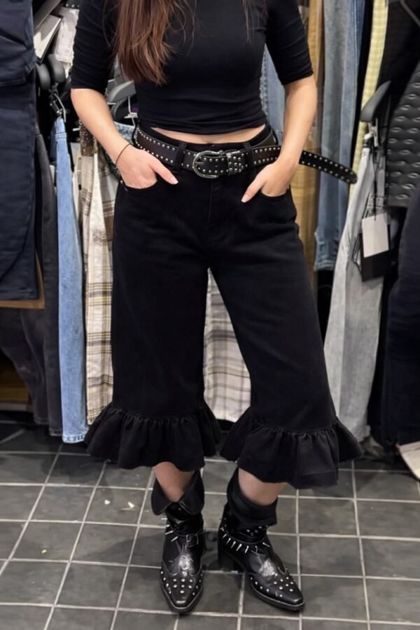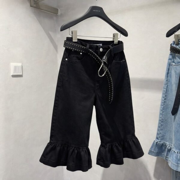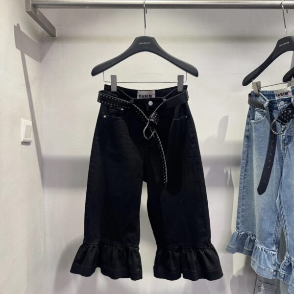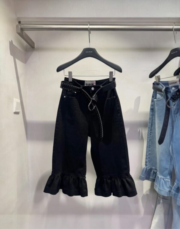 Now back in stock (Round 2)! These 5-part length (Capri style) jeans feature a stretchy fabric with stylish ruffled hems. They come complete with a high-quality studded leather belt. With a beautiful silhouette and stunning look, this is a highly sought-after piece! Brand: DARIM. 💯% Imported from Korea. Easy to mix and match—effortlessly chic and stylish. Grab yours before they’re gone!
