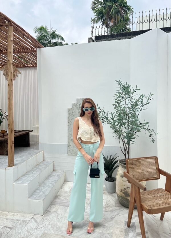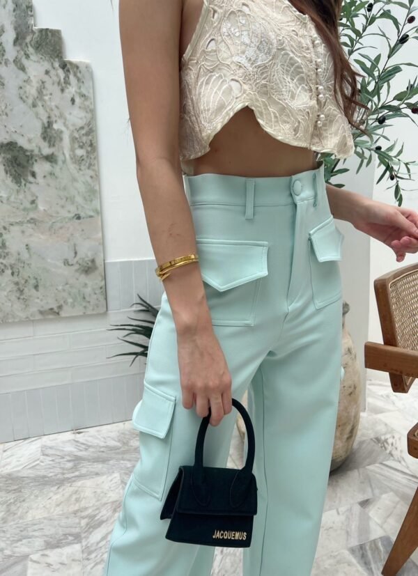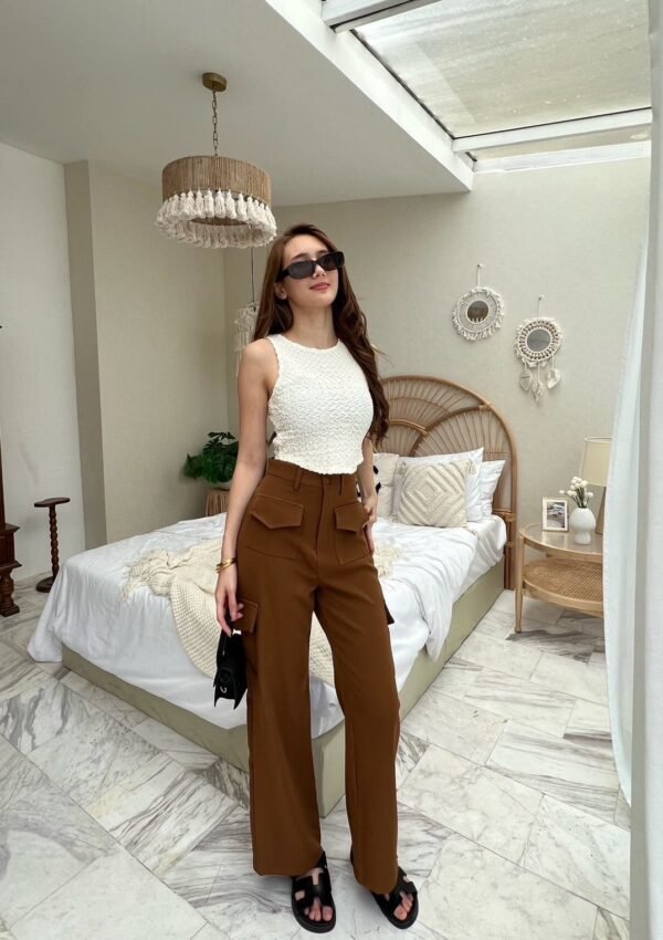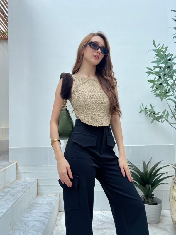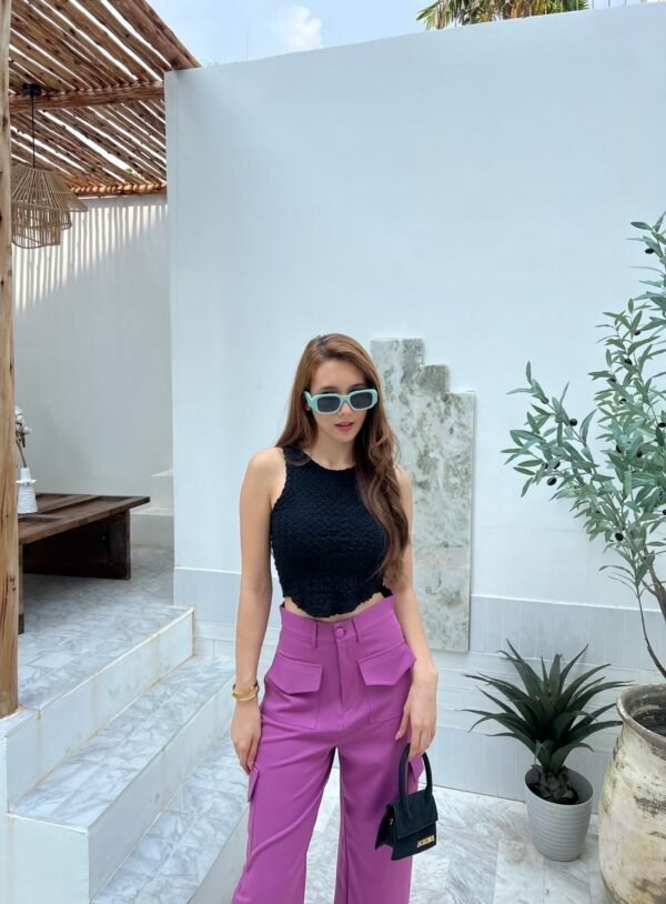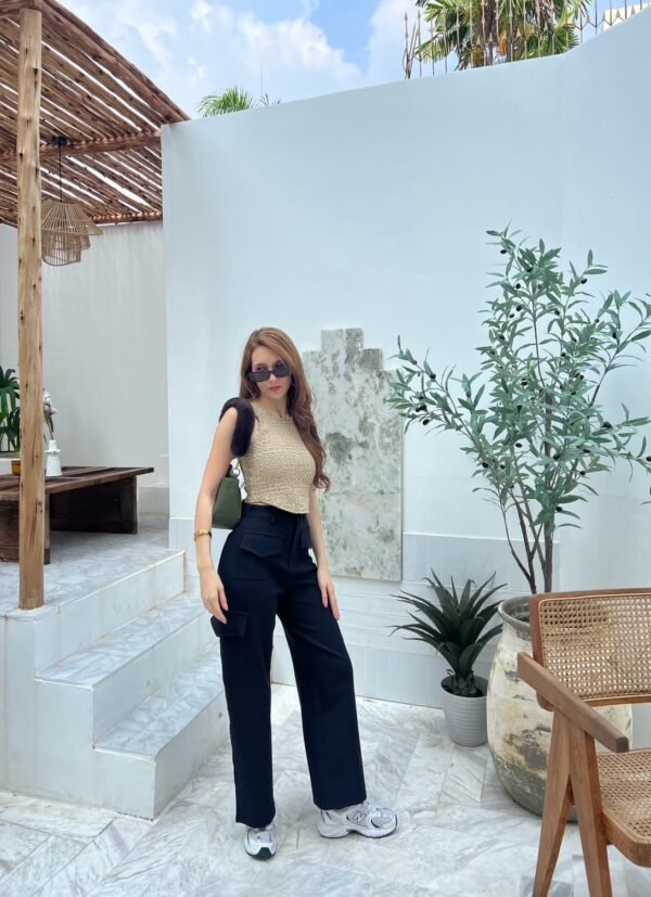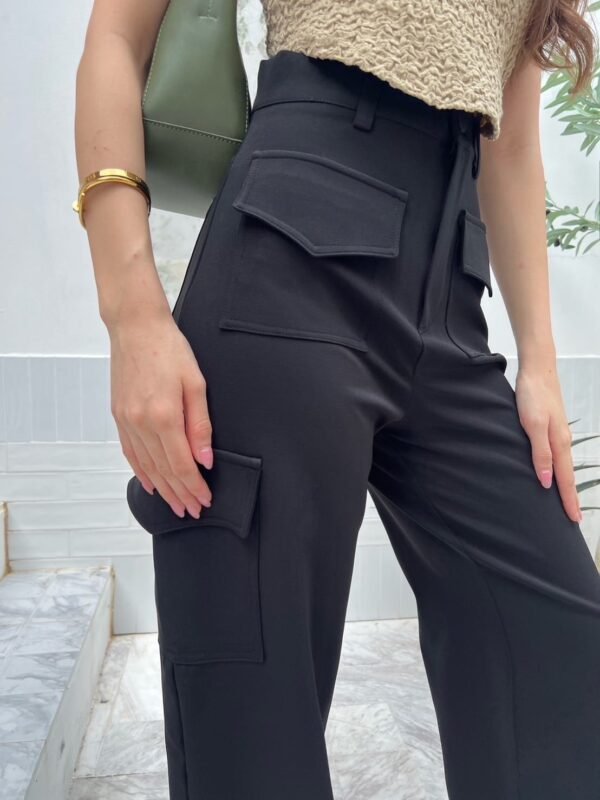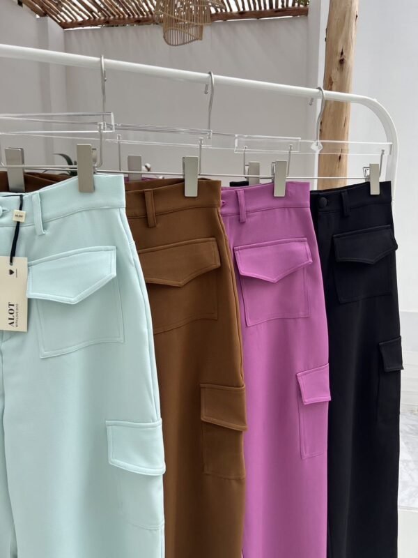 Excellent fabric and details. Cargo pants that aren’t too masculine. Impeccable cutting, comparable to high-end boutique quality. Thick, stretchy, soft, comfortable, and not hot. Pulling the waist down to a mid-rise will fit perfectly.