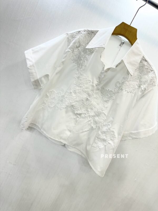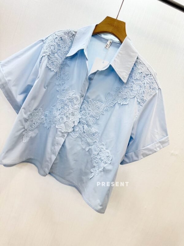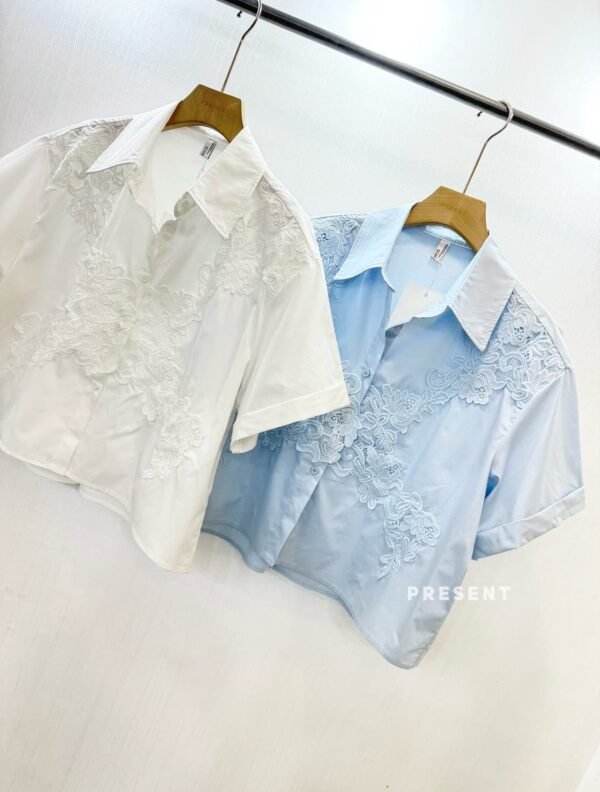featuring a full-button front and intricate lace detailing throughout. A truly beautiful piece!