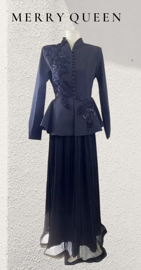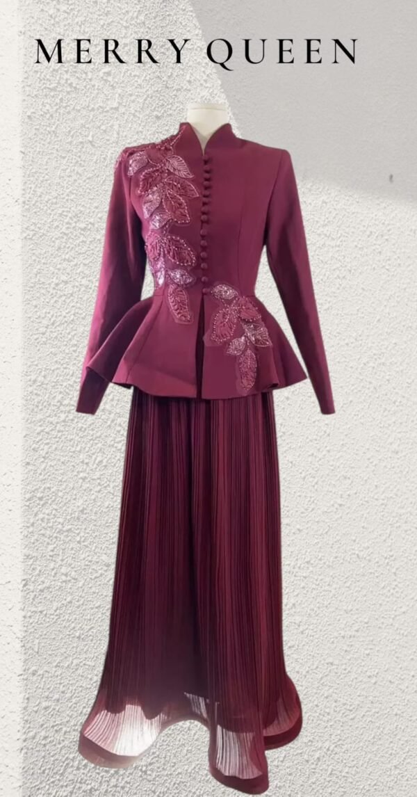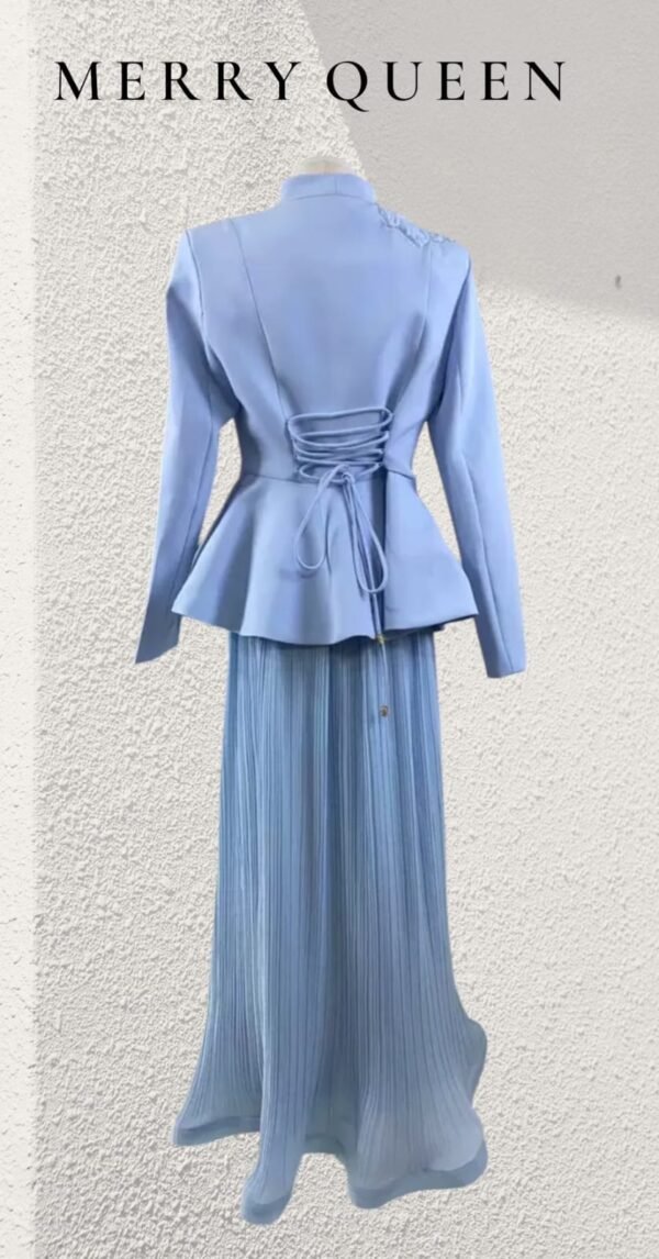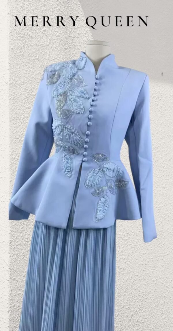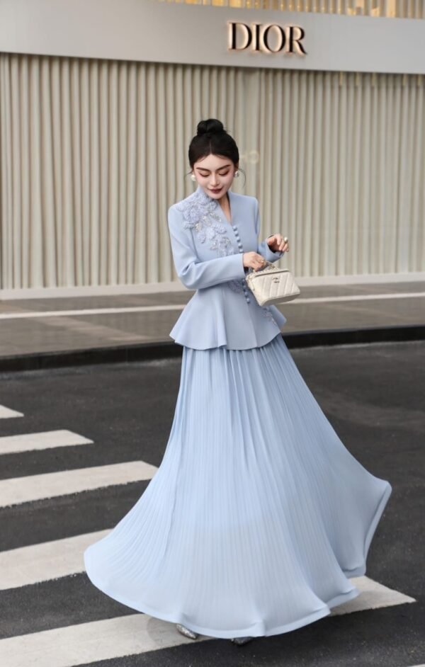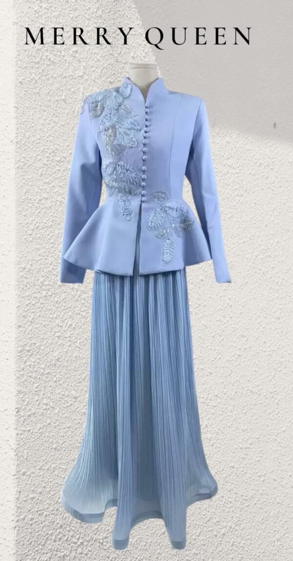 2-piece set, premium quality, very elegant. The front is adorned with premium quality lace. This model features a pleated skirt with a built-in lining. This outfit is so beautiful!