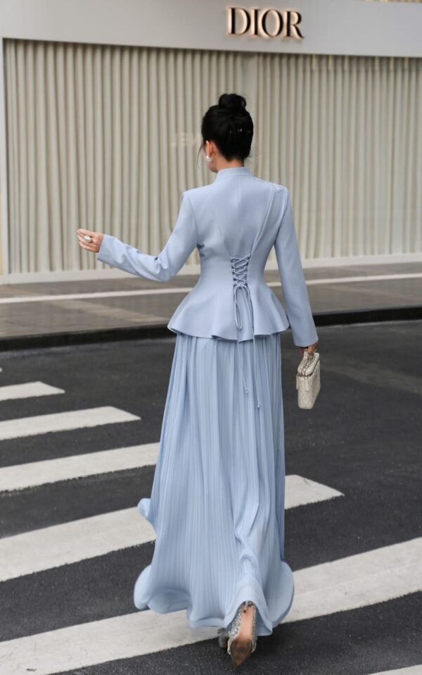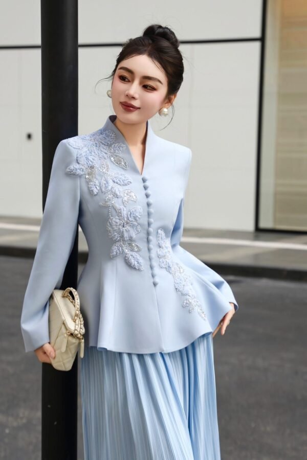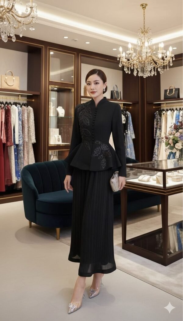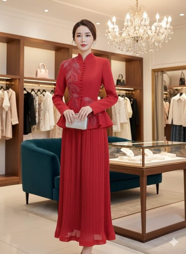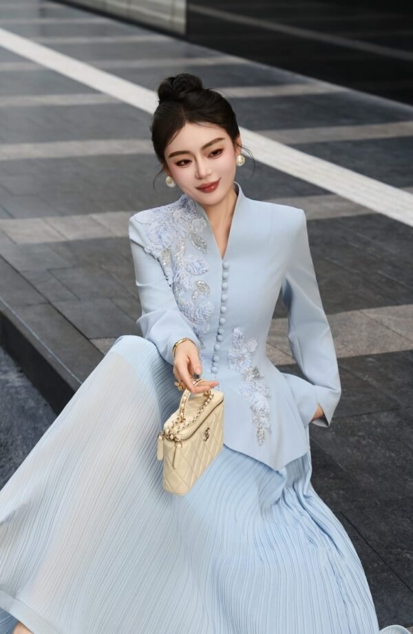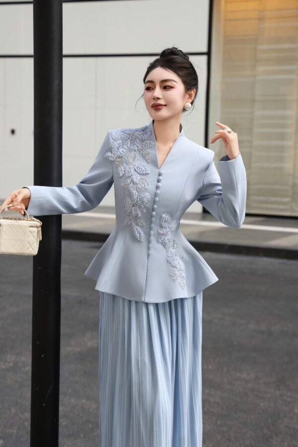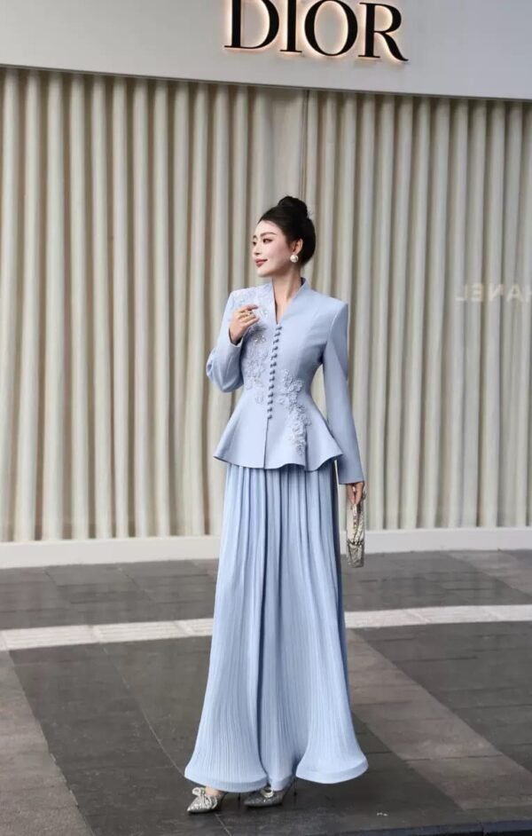 2-piece set, premium quality, very elegant. The front is adorned with premium quality lace. This model features a pleated skirt with a built-in lining. This outfit is so beautiful!