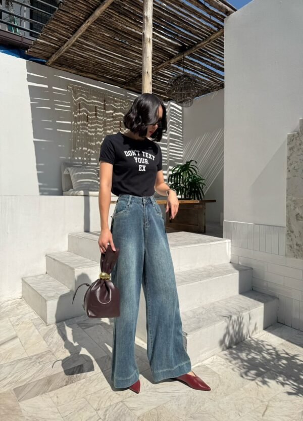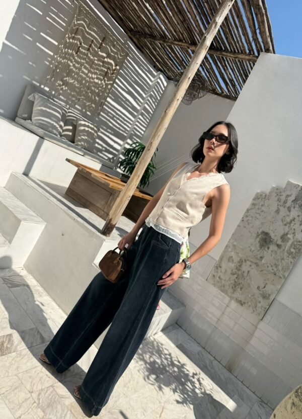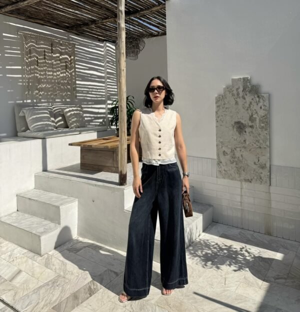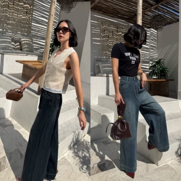 featuring a wide-leg silhouette and stylishly designed side pockets. Made from soft denim for ultimate comfort