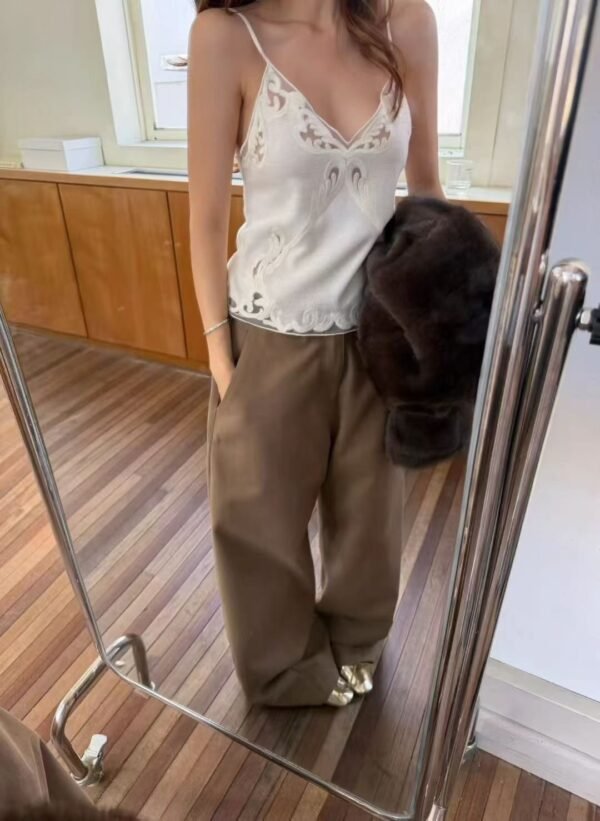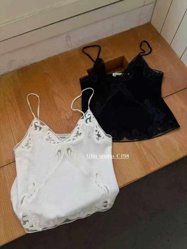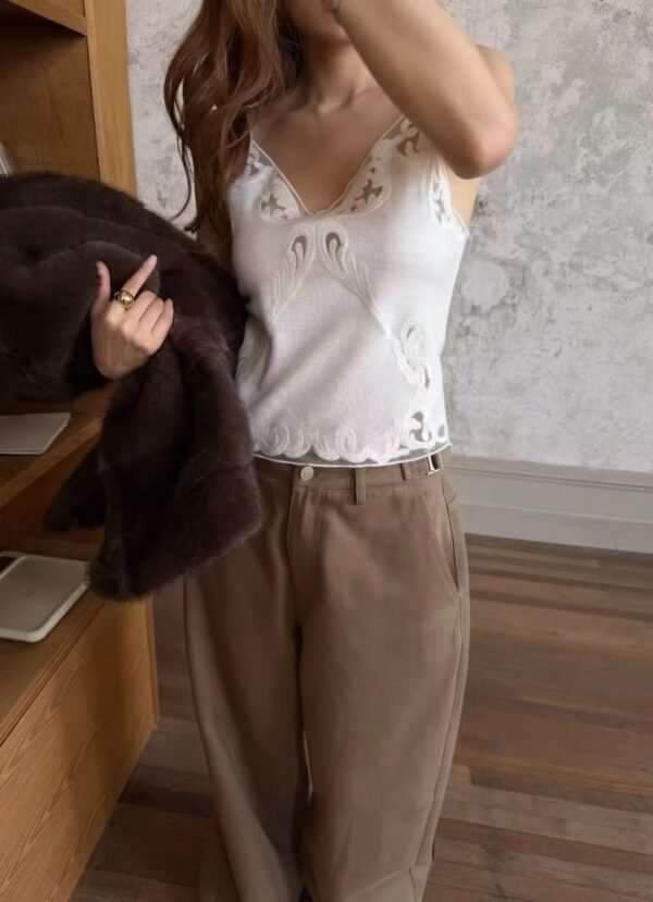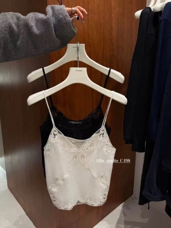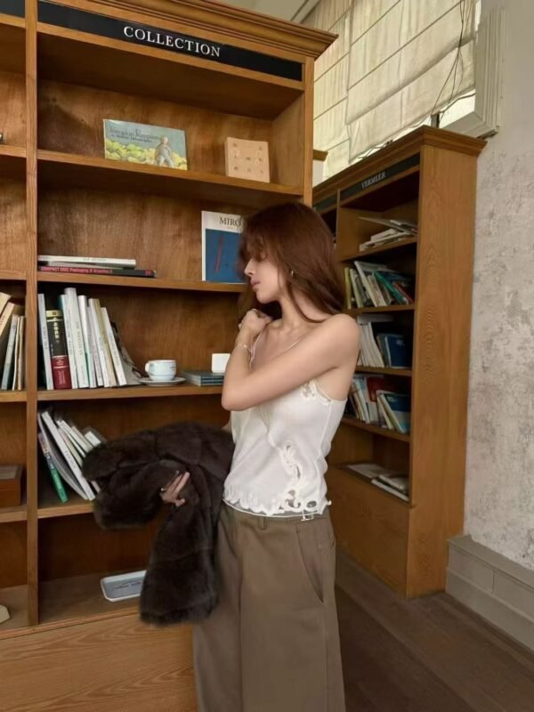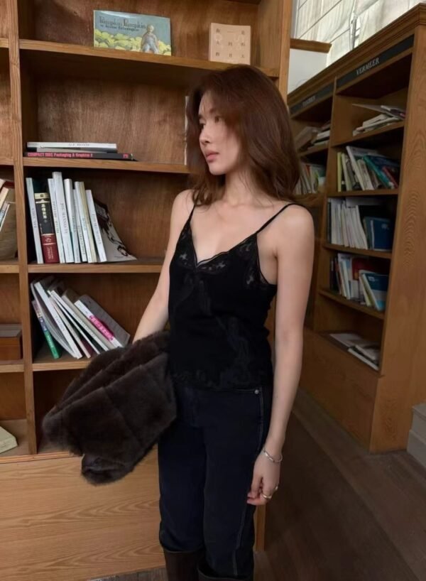 Knitted Spaghetti-Strap Top — Featuring a Korean-style design with exquisite, high-quality lace trim. Flattering and incredibly cute! Easy to mix and match.  Imported Quality — Highly Recommended!