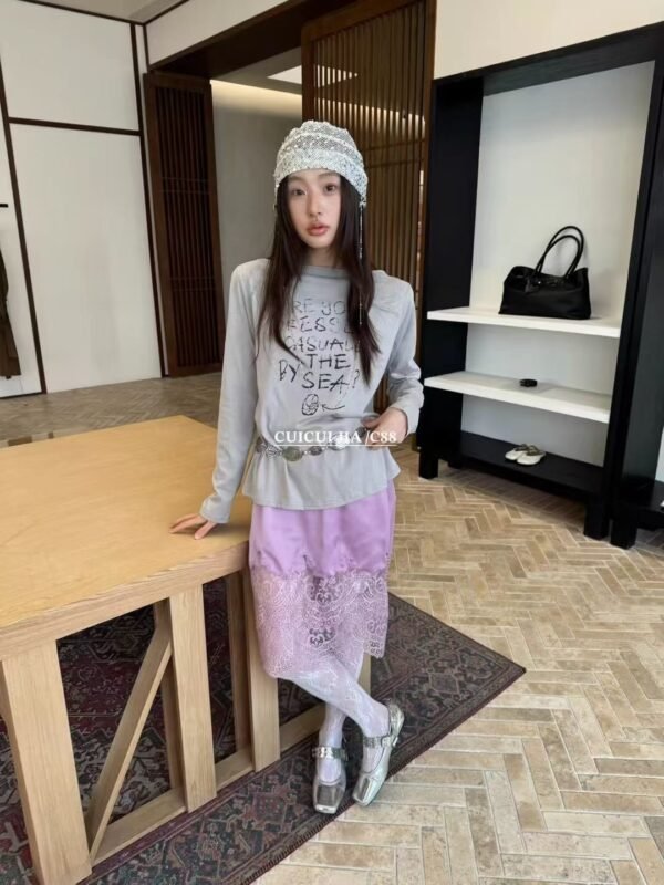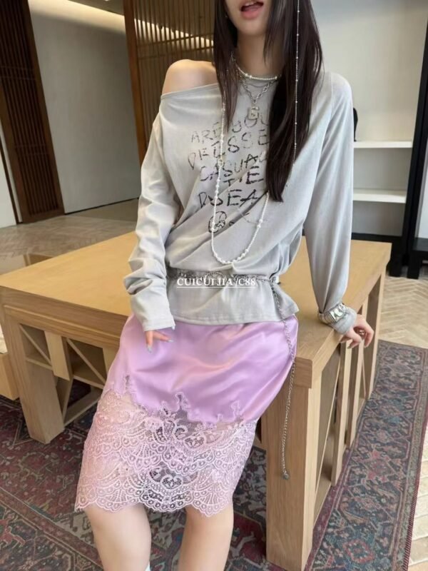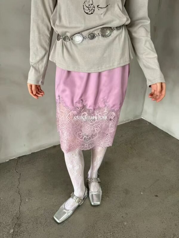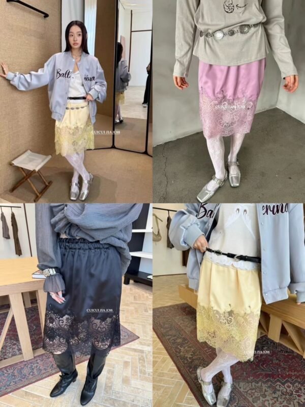 Satin Skirt with Lace Hem — Featuring a chic Korean-style design and a perfect length. Imported Quality. Flattering and right on trend—highly recommended!
