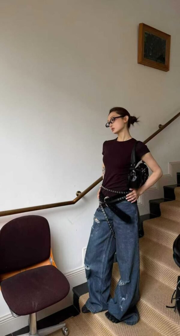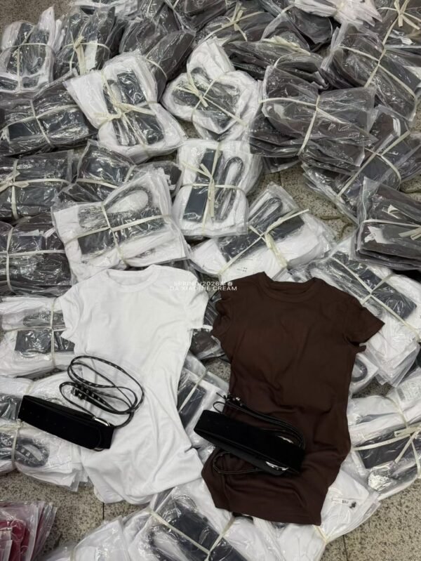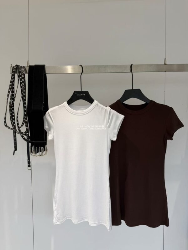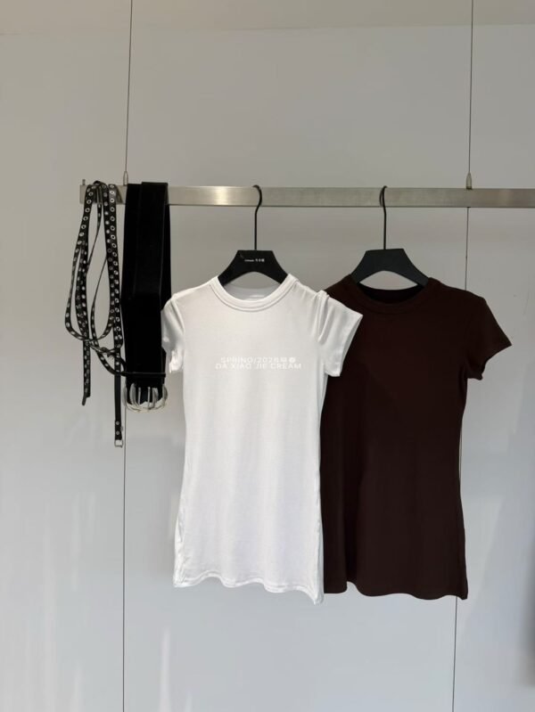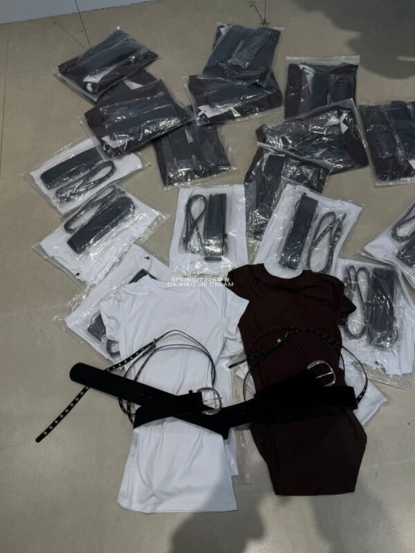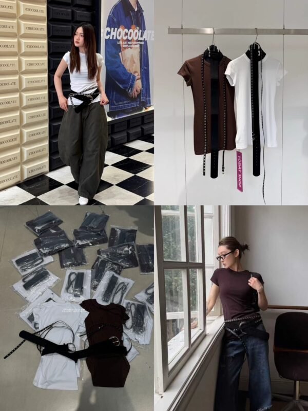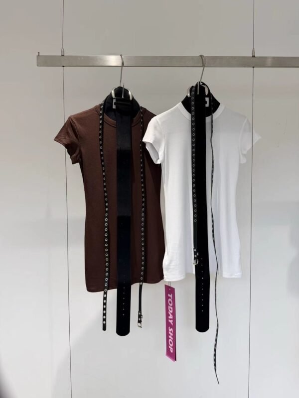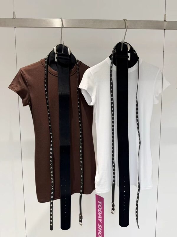 Korean-style short-sleeve T-shirt—100% imported from Korea! Crafted from high-quality fabric with excellent stretch. Comes complete with a matching belt; looks great whether worn separately or together. Features a lovely, flattering cut—get yours now!