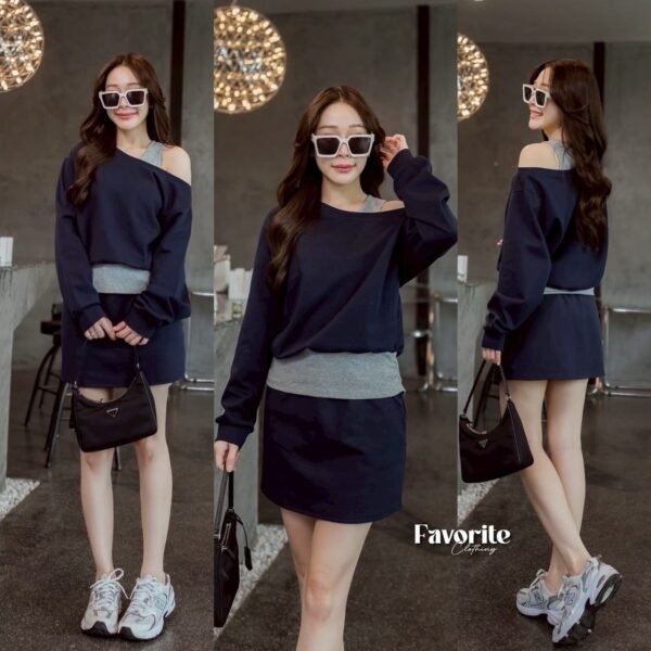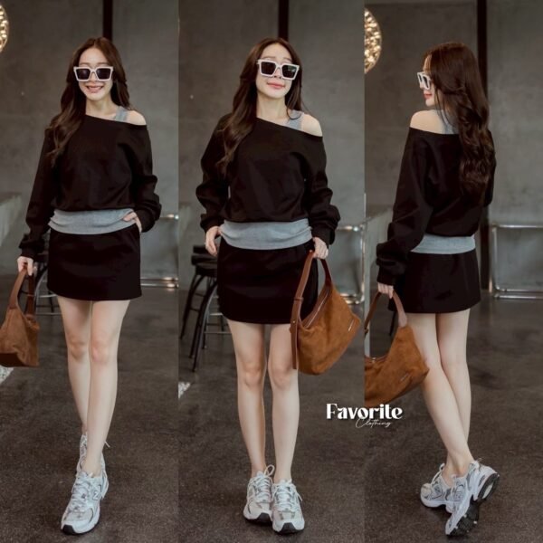 A stylish set featuring a long-sleeve, wide-neck tee with a unique layered design—it looks like you’re wearing a tank top underneath! You can wear it off-the-shoulder or pulled up over the shoulders. It comes with a matching skirt featuring a smocked elastic waist, built-in shorts for modesty, and functional pockets. The quality is absolutely superb! This set is an incredible value—get yours fast! The quality definitely exceeds the price tag.