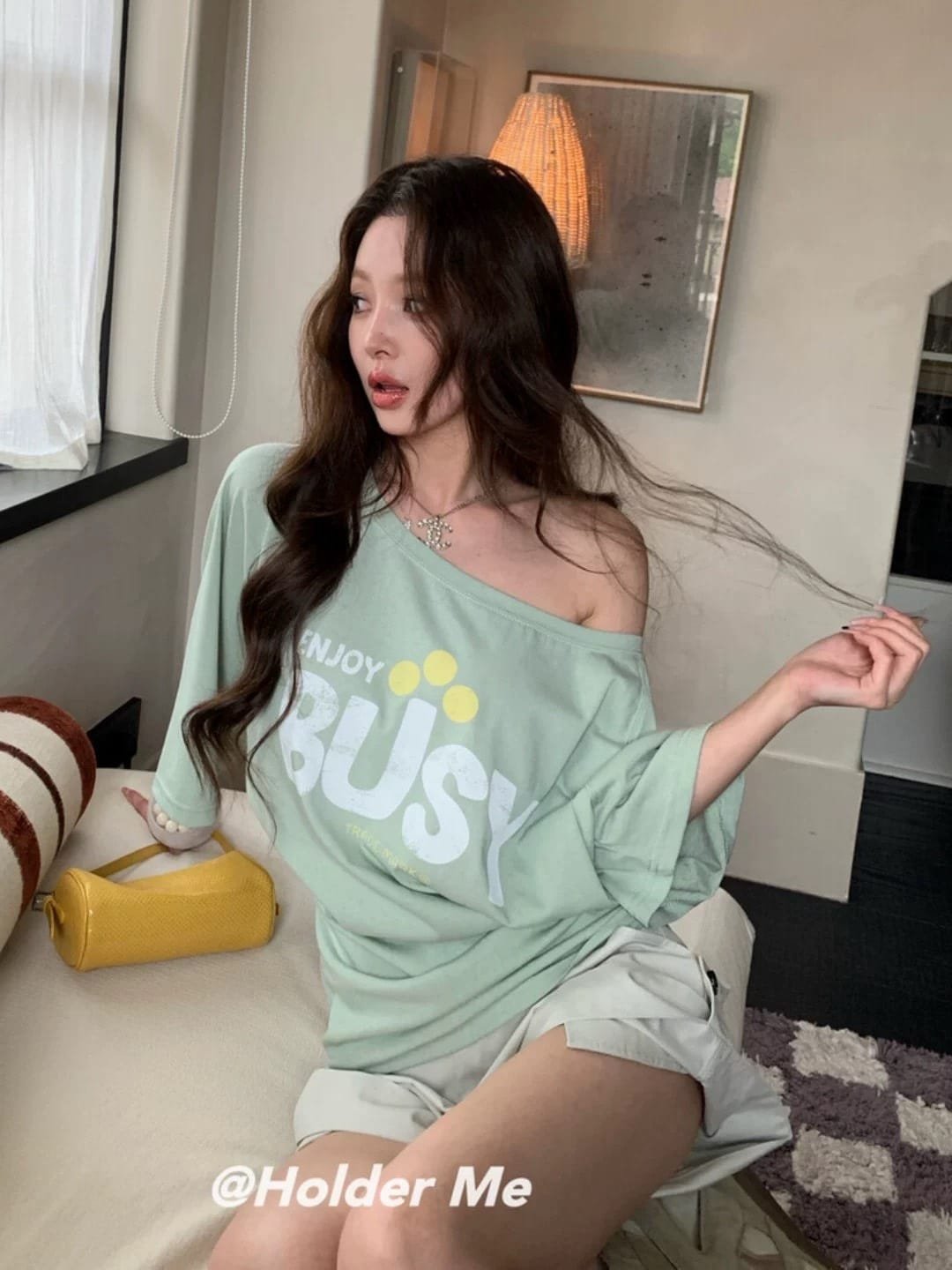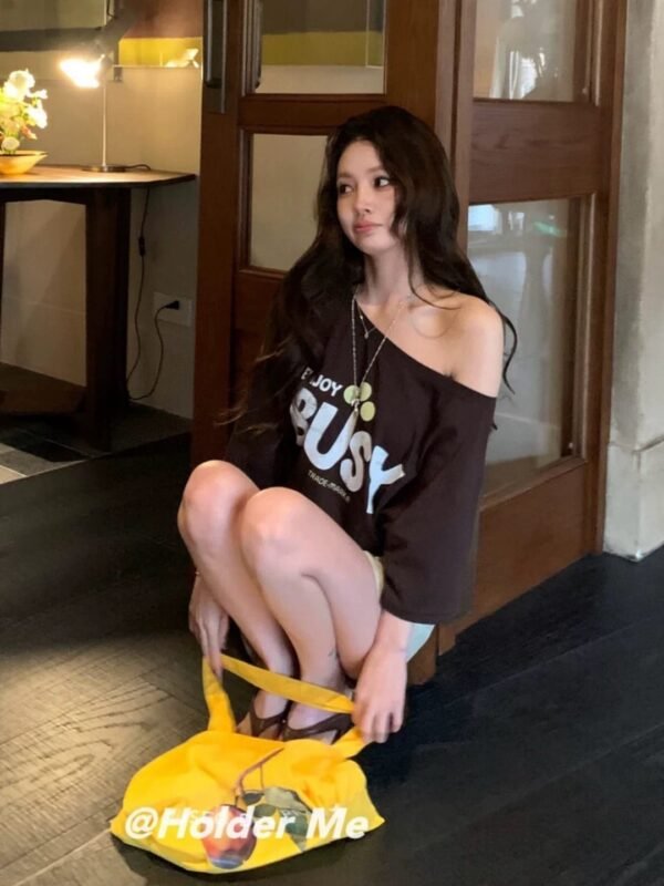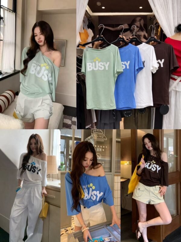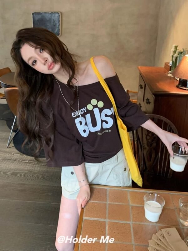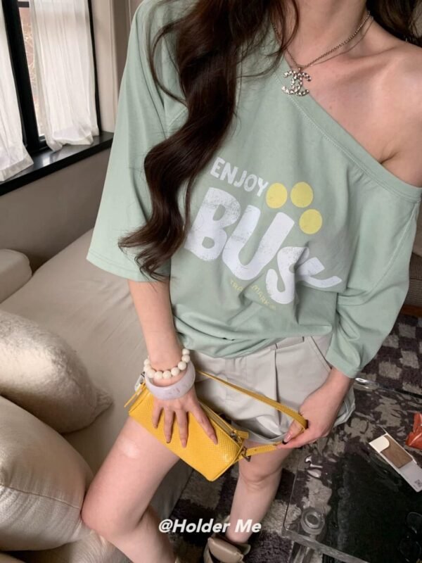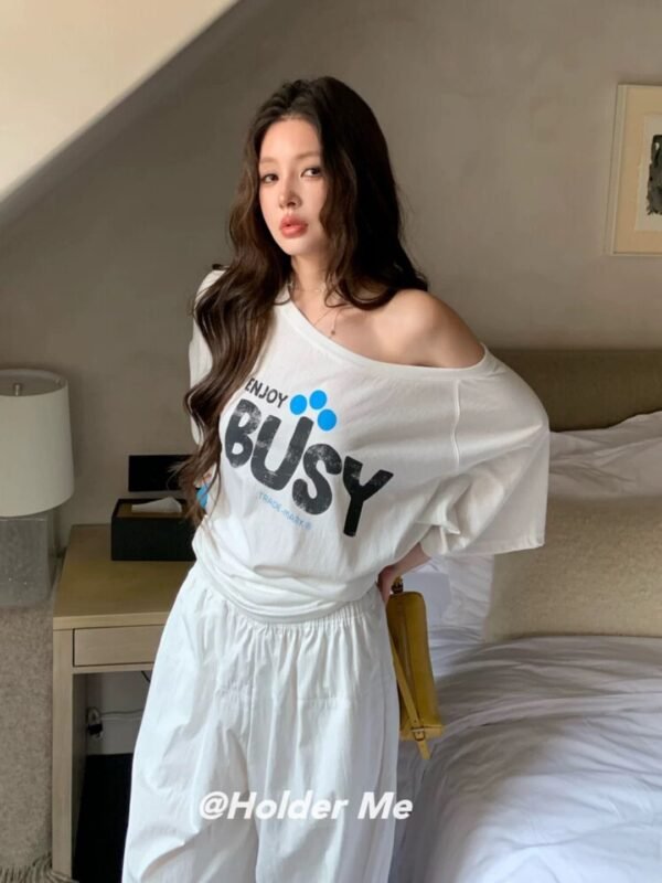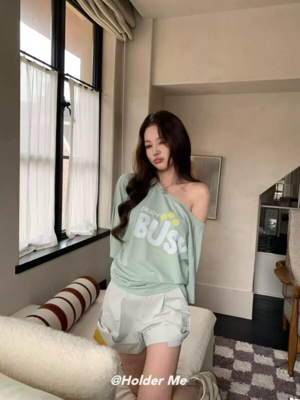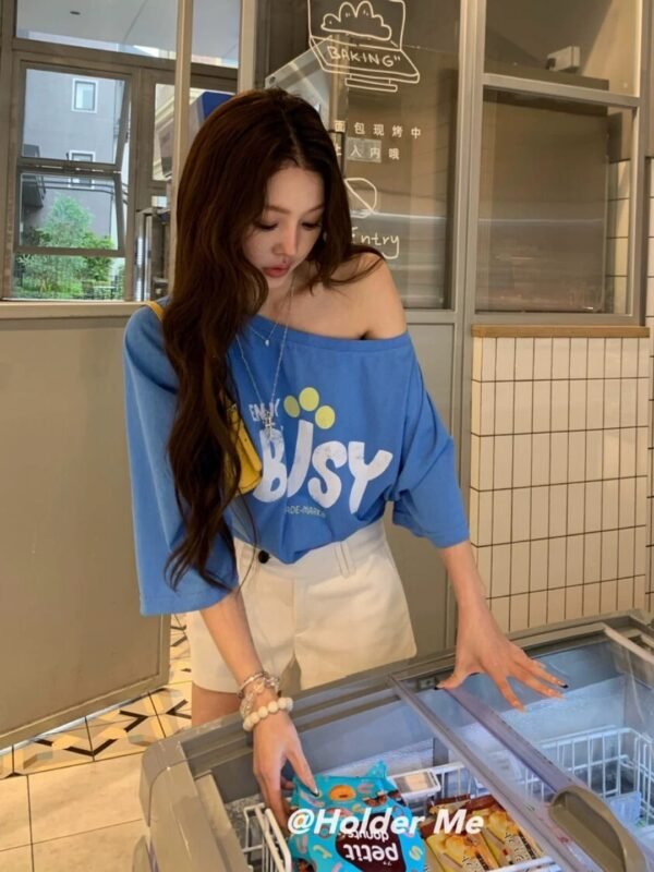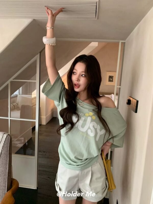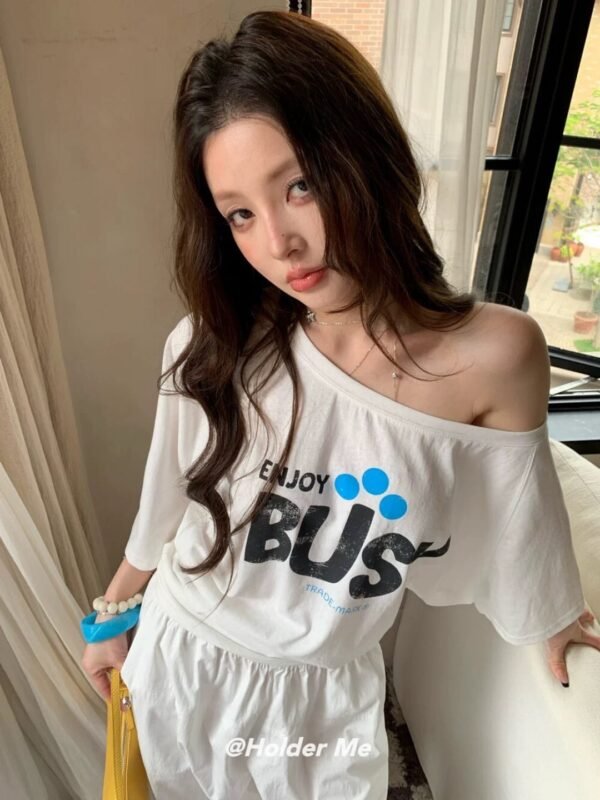 Oversized Short-Sleeve Top — Off-the-Shoulder Style. Featuring a chic print and Korean-inspired design. Imported from Korea. Made from high-quality fabric that drapes beautifully—perfect for welcoming the summer season! Grab yours now!