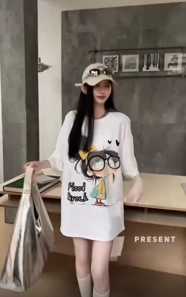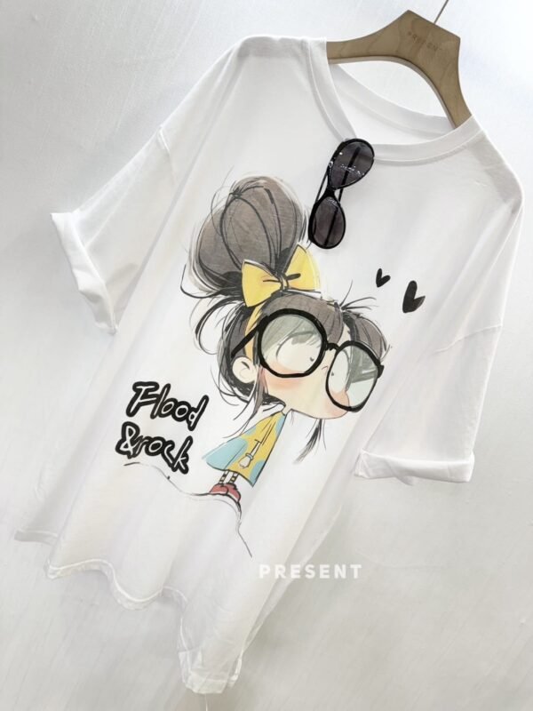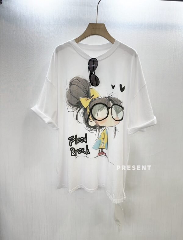 Round neck, short-sleeved, oversized t-shirt with printed design. Easy to match and easy to wear.