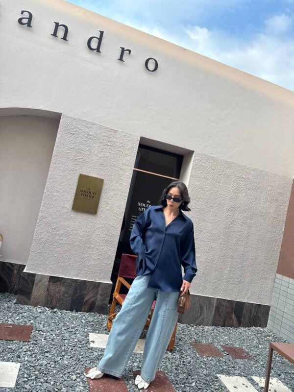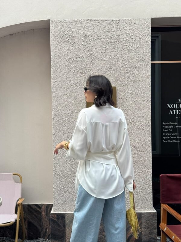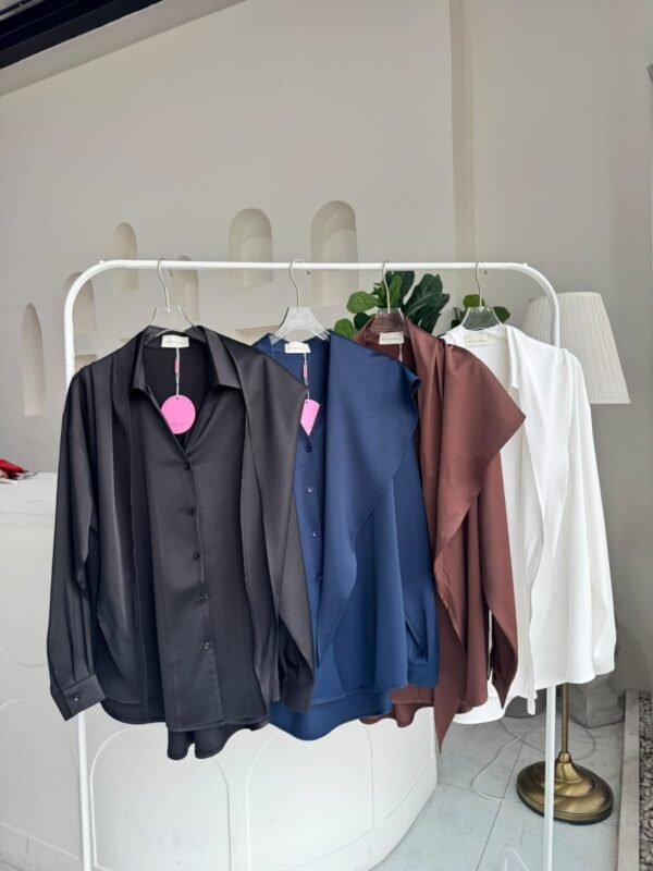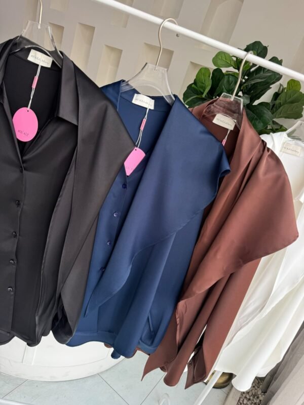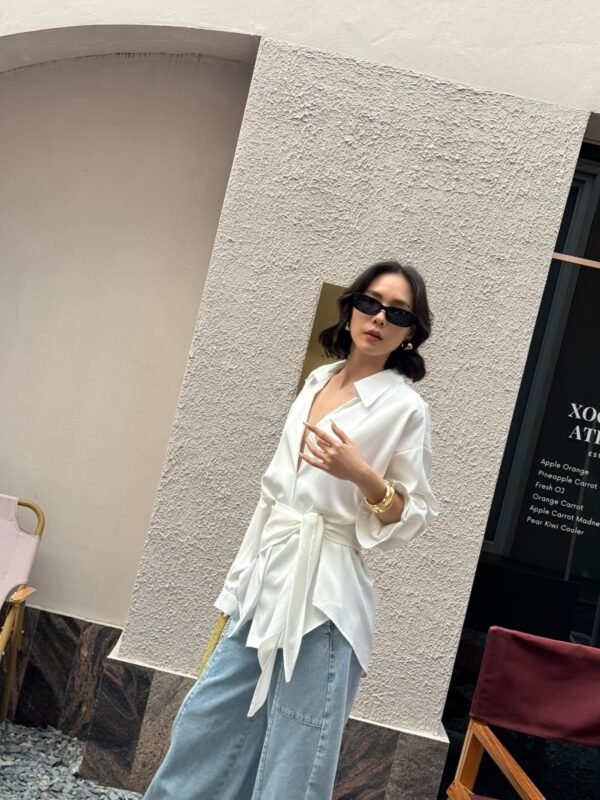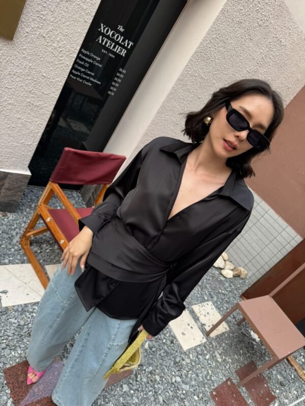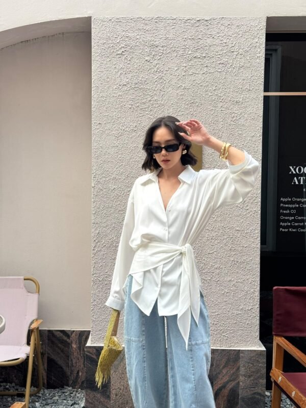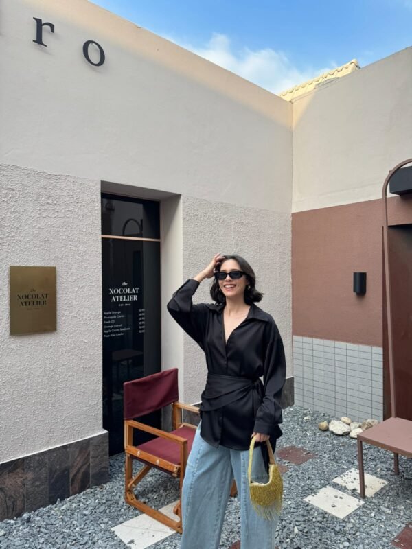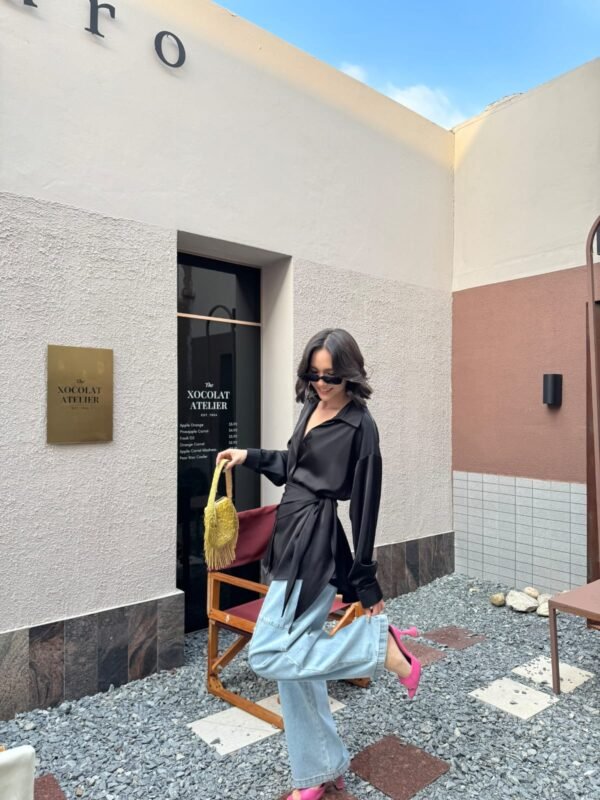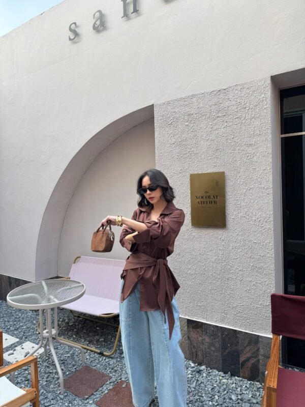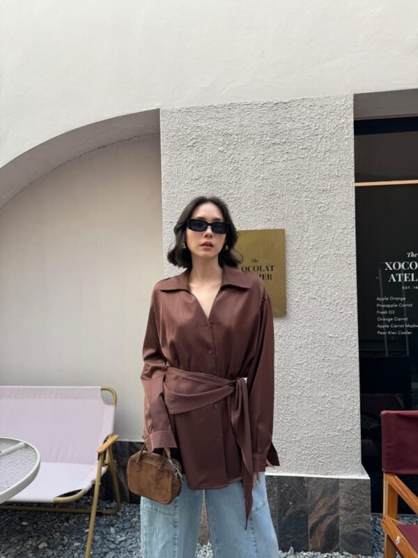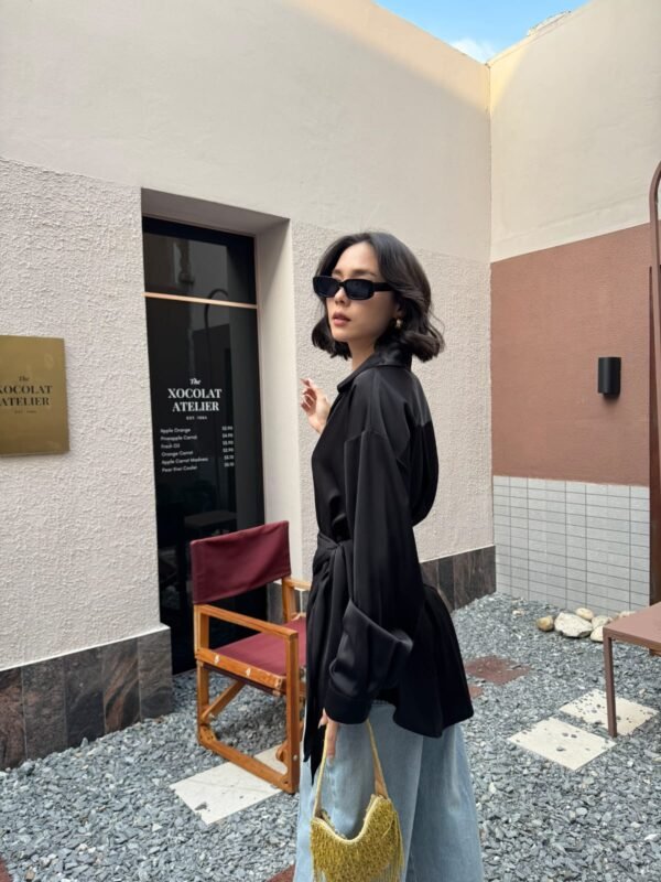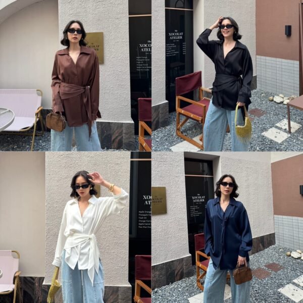loose fit, with a detachable fabric tie that can be worn around the neck or waist. Made of high-quality, weighty satin fabric. Beautiful.