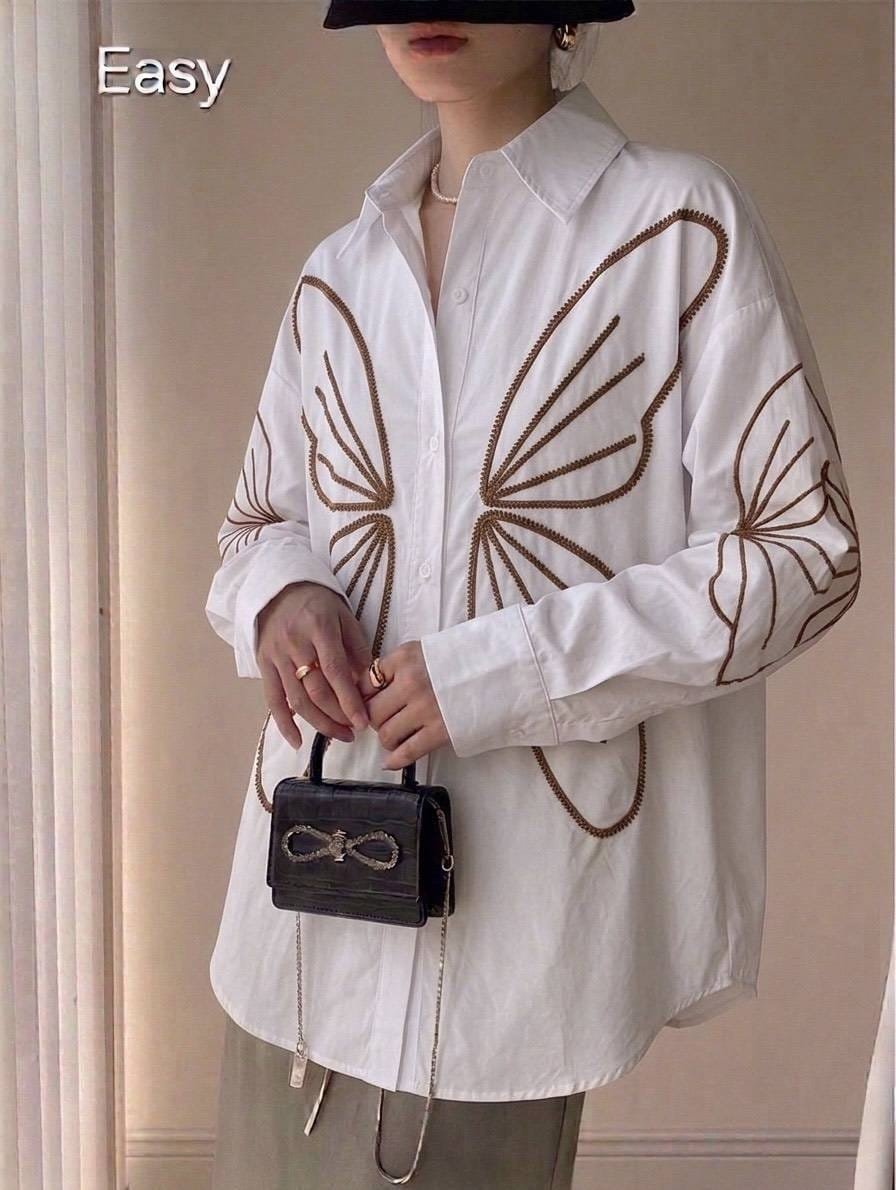 Long-sleeved collared shirt with front buttons